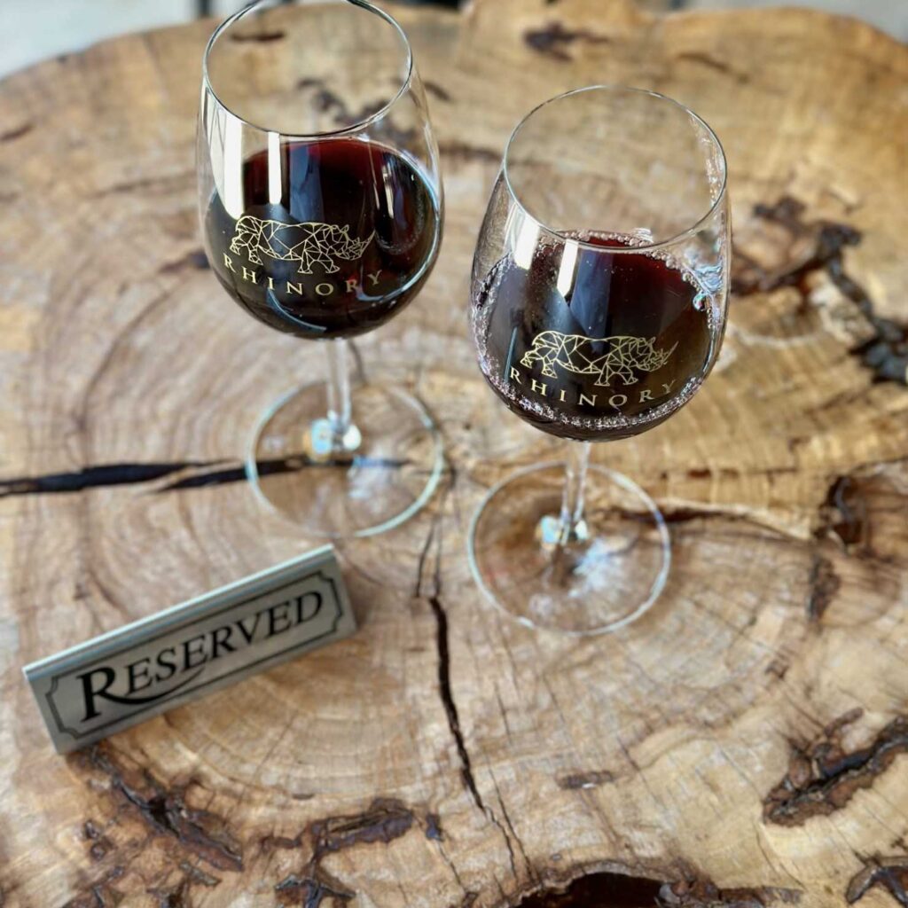 If you do NOT have a reservation, we may be able to accommodate you for a tasting, depending on seating availability and staffing. If we are unable to get you a tasting, you are welcome to get a glass or bottle of wine and enjoy the scenery and Blake, our rhino! There’s generally plenty of open seating in our Grove area.